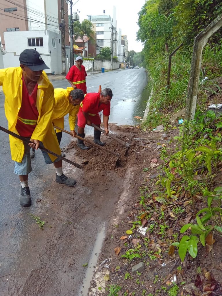 Os trabalhos na rede de drenagem em execução são limpeza de galerias com remoção de entulhos nos bairros de Cruz das Armas, Valentina, Cabo Branco, Tambaú, Manaíra, Esplanada, José Américo, Água Fria e Bairro das Indústrias.
