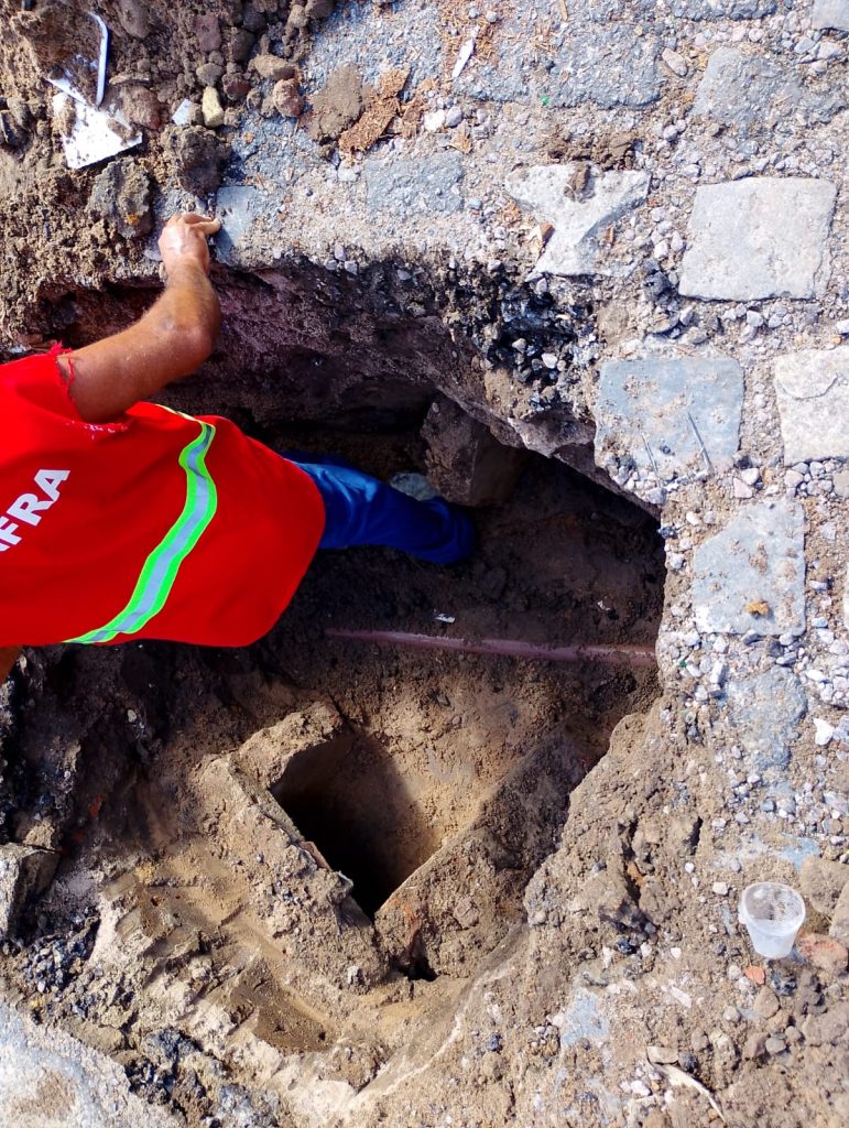 As ações de manutenção na rede de drenagem são serviços de limpeza e desobstrução de galerias com remoção de entulhos nos bairros do Centro e Varadouro.