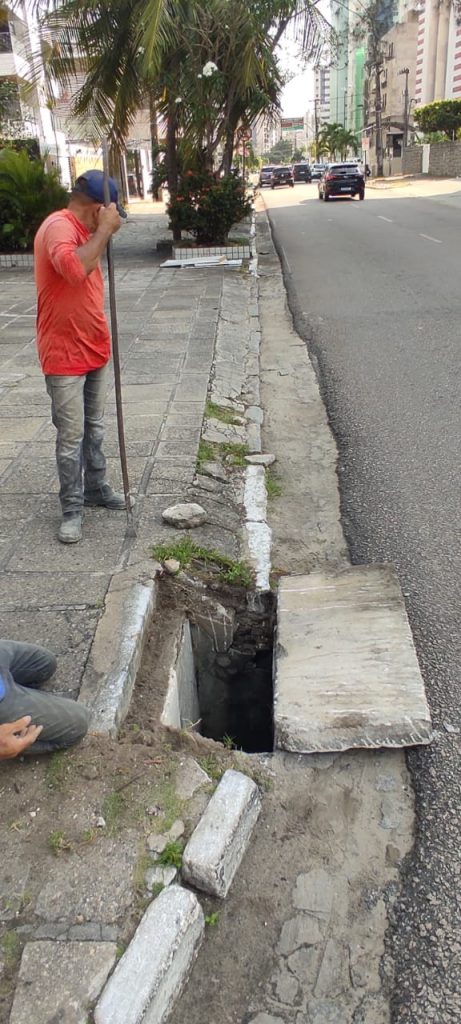 Os serviços na rede de drenagem continuam com limpeza, desobstrução e recuperação de galerias com remoção de entulhos, além de abertura de lançamentos nos bairros do Centro, Esplanada, Cabo Branco, Tambaú, Manaíra, Bessa, Engenho Velho, Mangabeira, Bancários e Bairro dos Novais.