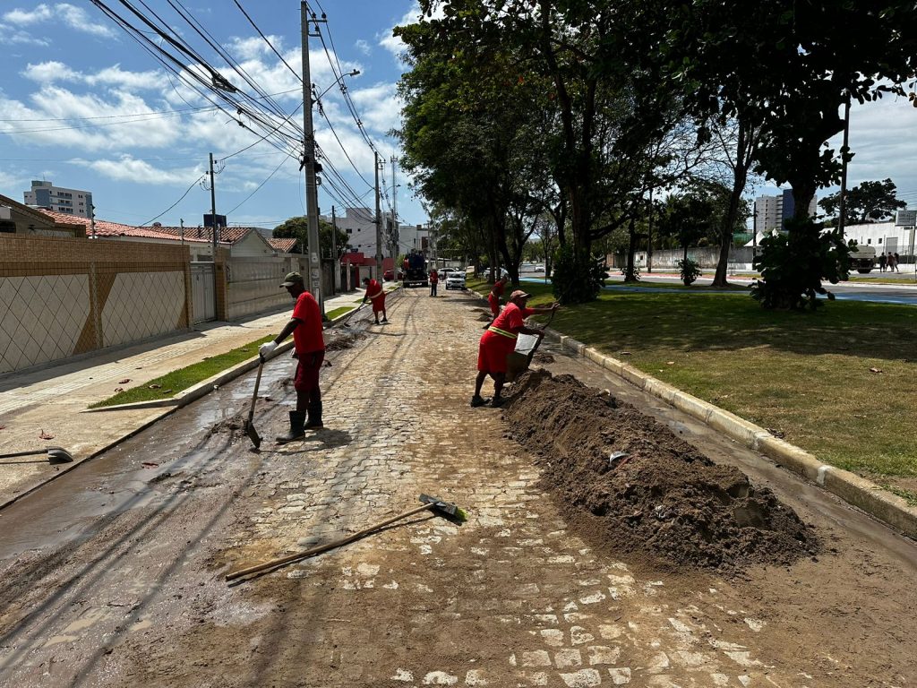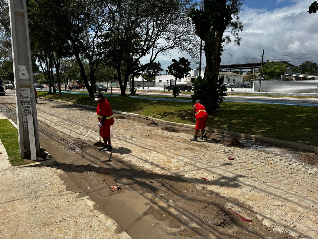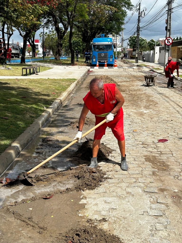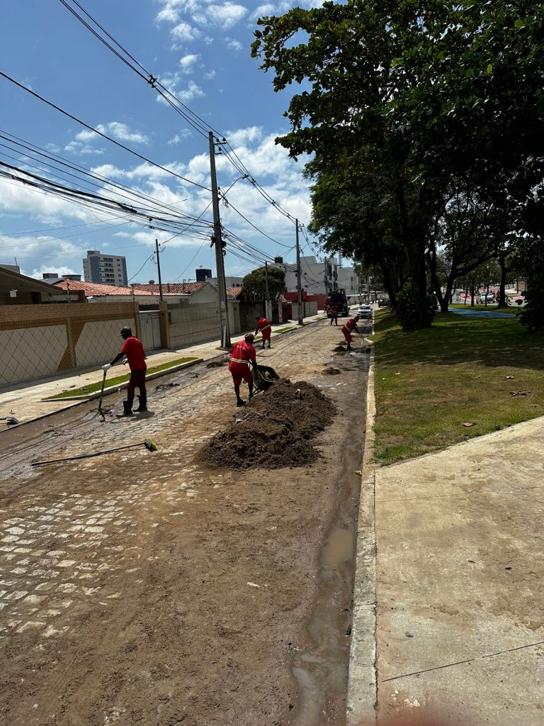Os serviços na rede de drenagem reforçam serviços de desobstrução de galerias e limpeza no bairro dos Bancários, nas proximidades do Parque Linear das Três Ruas, que será entregue à população de João Pessoa neste sábado (21).