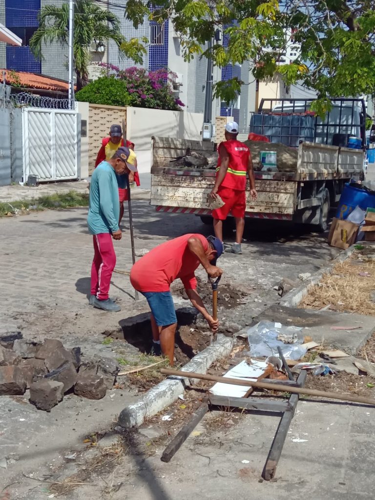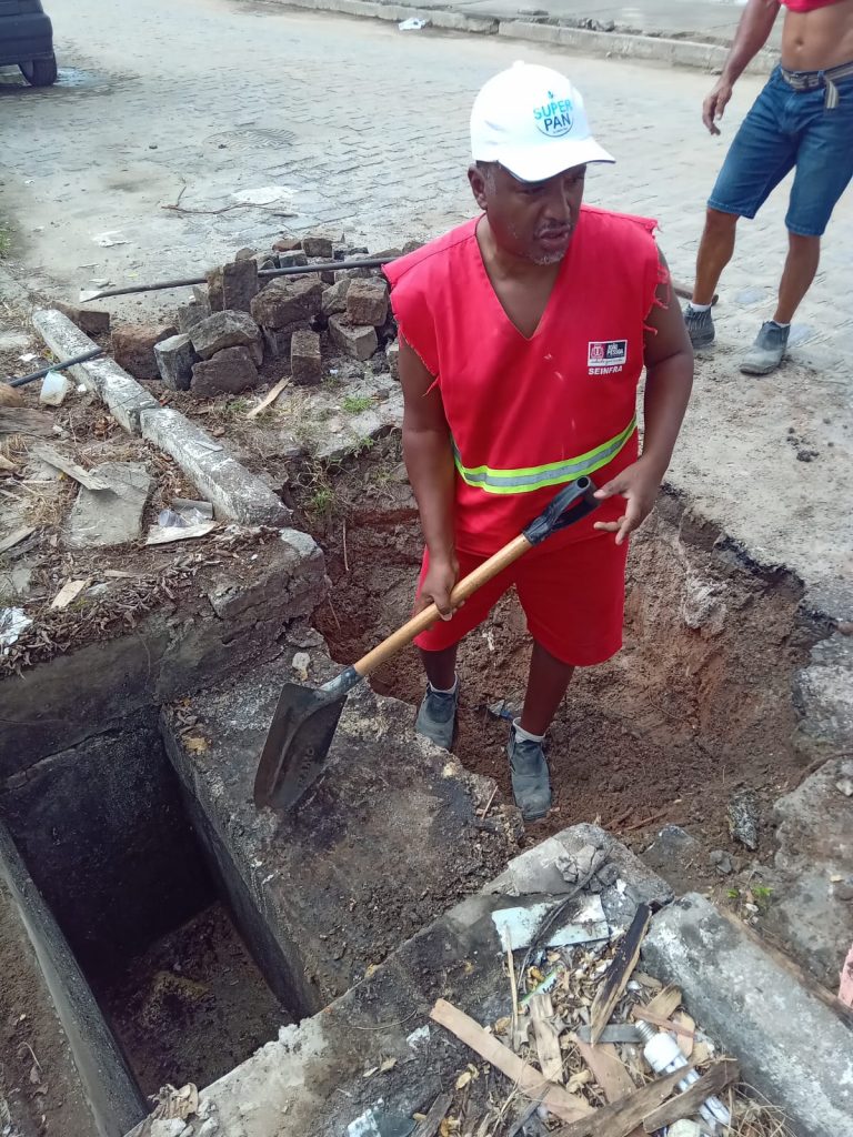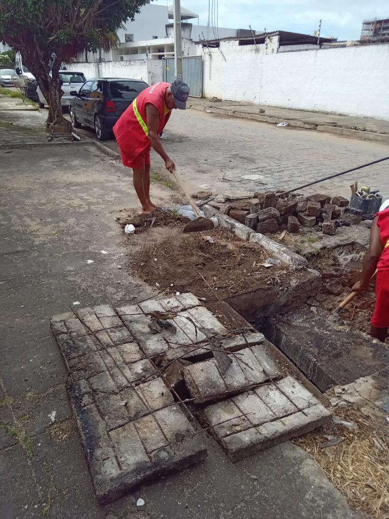 Os serviços na rede de drenagem continuam com limpeza, desobstrução e recuperação de galerias com remoção de entulhos, além de abertura de lançamentos nos bairros de Aeroclube, Rangel, Cabo Branco, Tambaú, Manaíra, Bessa, Mangabeira e Bancários.