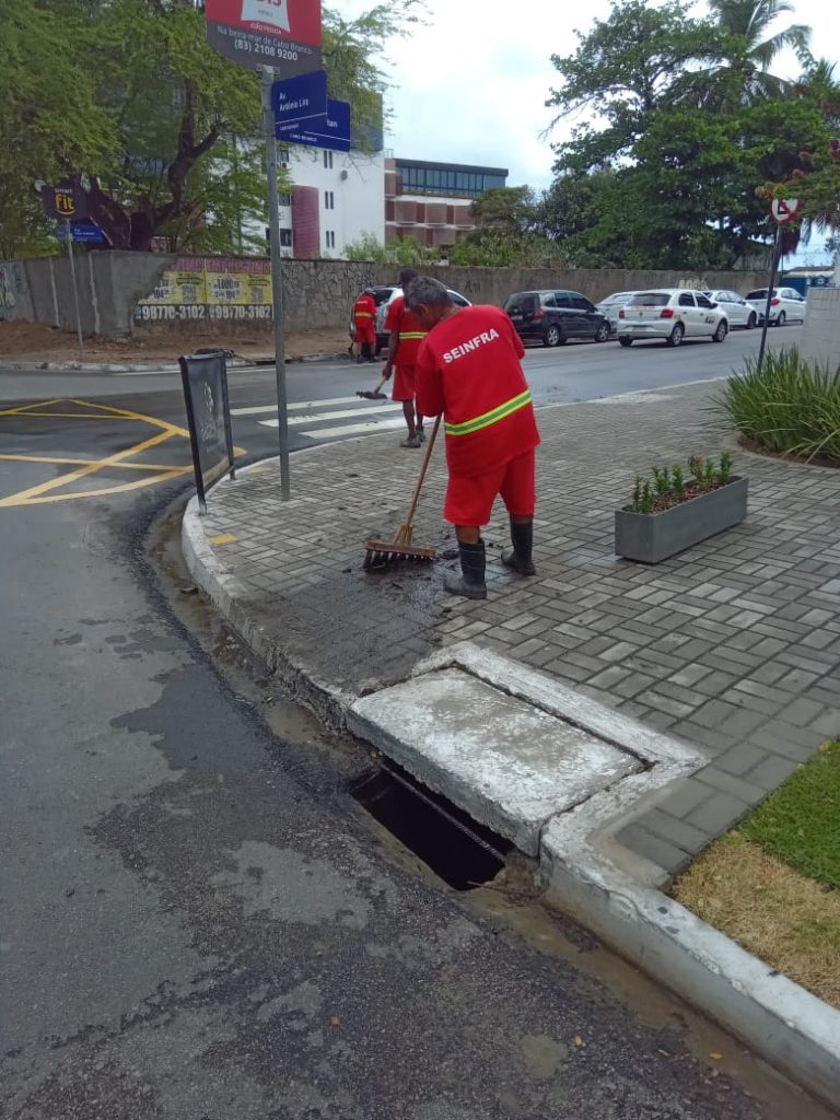 As equipes que atuam na rede de drenagem continuam com a ação de prevenção e executam desobstrução de galerias, abertura de lançamentos, recuperação de boca de lobo e reposição de placas nos bairros de Jardim Cidade Universitária, Ernani Sátiro, Manaíra, Cabo Branco, Tambaú, Bessa, José Américo, Cristo, Mangabeira e Roger.