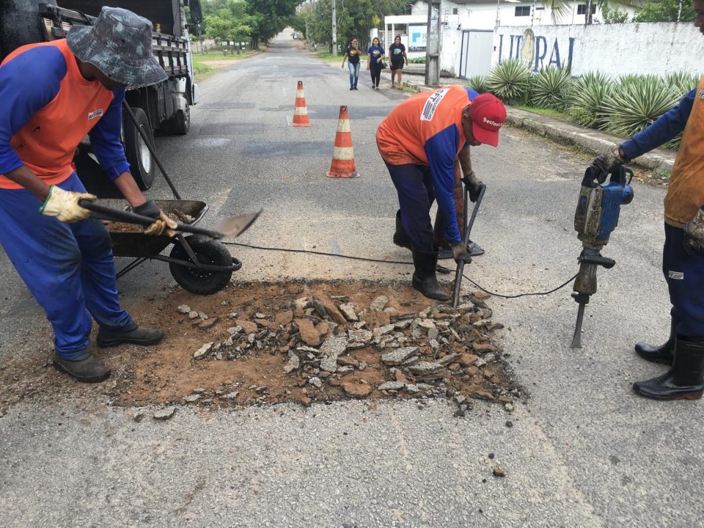 A Secretaria de Infraestrutura (Seinfra) inicia a semana realizando serviços de manutenção na rede de drenagem, iluminação pública e com a Operação Tapa-Buraco. A ação acontece mais de 30 bairros da Capital e são realizados diariamente pela Diretoria de Manutenção e Conservação (DMC) e Diretoria de Iluminação Pública (Dilup).