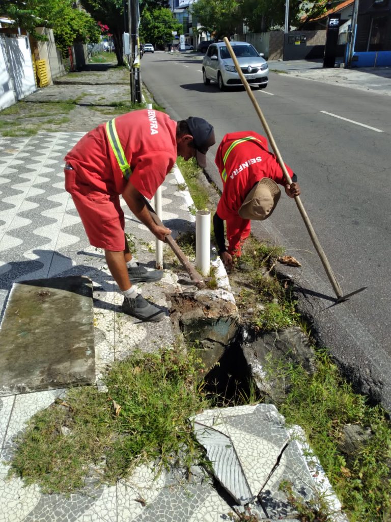 As equipes de manutenção de galerias estão realizando serviços de limpeza de galerias; remoção de entulhos; verificação de galeria e recuperação de piso; reposição de placas. A ação acontece em Manaíra; Miramar; Centro; Alto do Mateus e Valentina.
