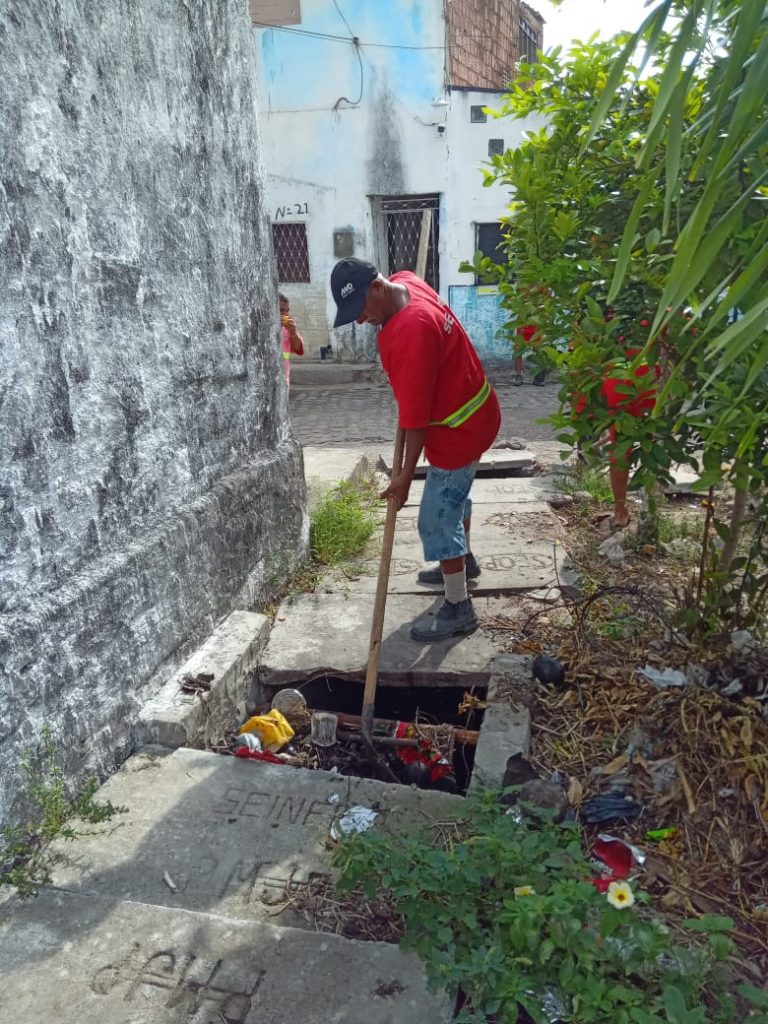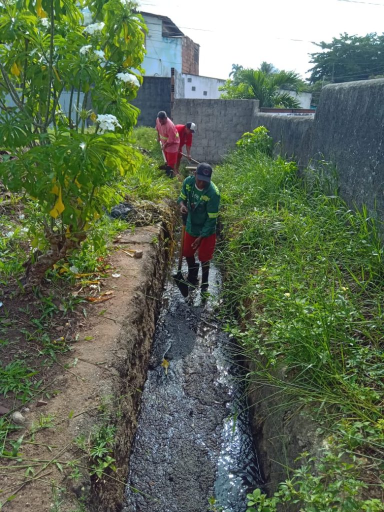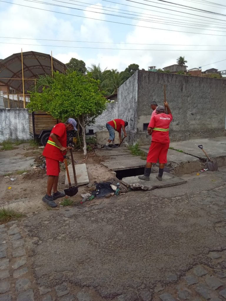 Os trabalhos na rede de drenagem em execução são remoção de entulhos, limpeza de galerias e abertura de lançamentos nos bairros do Centro, Bairro das Indústrias, Roger, José Américo e Mangabeira.
