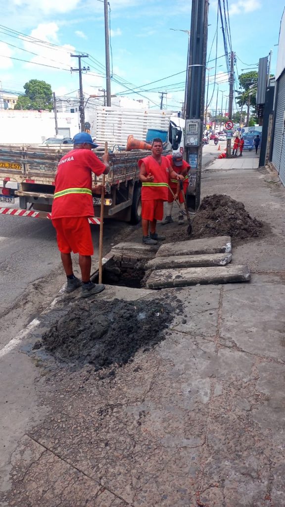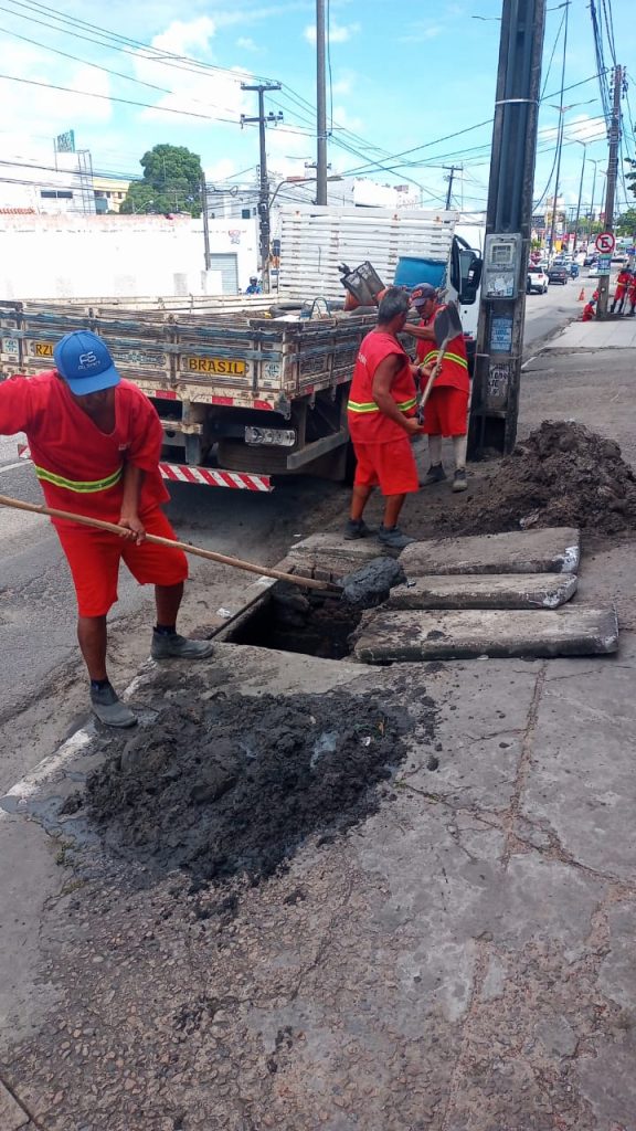 Os trabalhos na rede de drenagem em execução nesta terça-feira são remoção de entulhos, limpeza de galerias com recuperação e colocação de placas e grelhas nos bairros do Centro, Manaíra e Bancários.