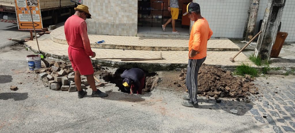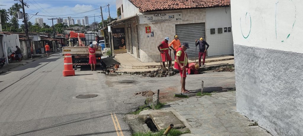 Os trabalhos na rede de drenagem em execução nesta terça-feira são remoção de entulhos, limpeza de galerias com recuperação e colocação de placas e grelhas nos bairros do Jardim Veneza, Mandacaru e Rangel.