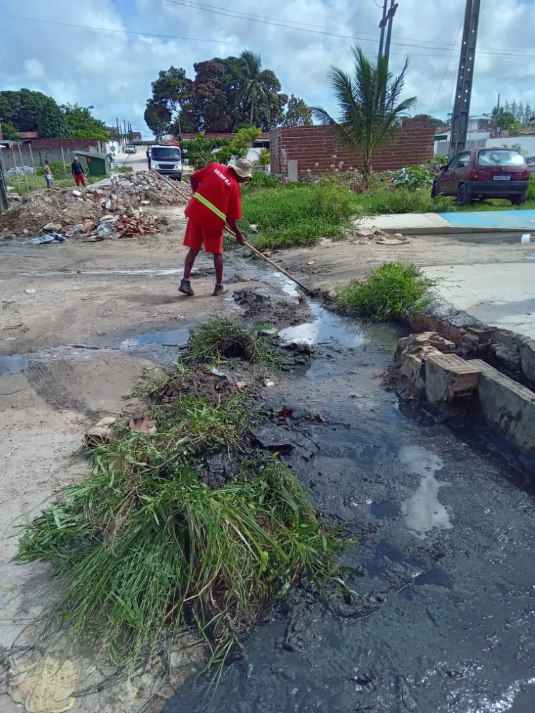 Os trabalhos na rede de drenagem em execução são limpeza de galerias com remoção de entulhos nos bairros do Costa e Silva, Varadouro, Castelo Branco, Roger, Esplanada, Gramame e Bancários.