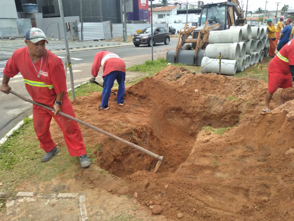 A equipe que atua na manutenção da rede de drenagem está executando serviços de limpeza, recuperação e desobstrução de galerias com remoção de entulhos no Centro, Bessa e Cabo branco.