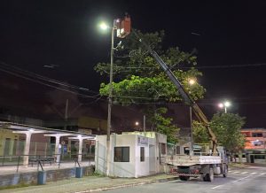 “Foram três equipes, com mais três técnicos para executar o serviço que restabeleceu 100% a iluminação no local. O trabalho foi realizado das 23h de quinta (24) até as 4h desta sexta-feira (25), horário permitido pela Semob para garantir a segurança viária”, explicou Joyce Alves, diretora da Dilup.