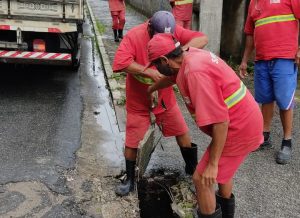 Os trabalhos desta sexta-feira (18) incluem limpeza de galerias, com remoção de entulho, recuperação de afundamento da pavimentação e recuperação de boca de lobo e tubulação.
