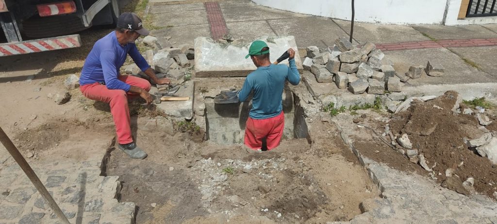 A manutenção de galerias está executando serviços de limpeza e recuperação e de galerias, reposição de grelhas e placas. As equipes trabalham no Planalto da Boa Esperança, Mangabeira VIII, Bessa e Centro.