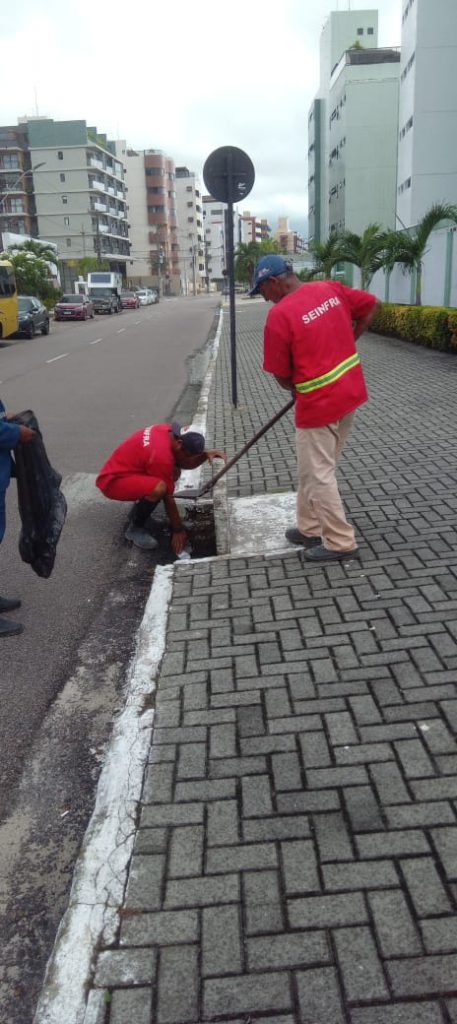 Os trabalhos na rede de drenagem seguem realizando serviços de manutenção e prevenção com limpeza, recuperação e desobstrução de galerias, com retirada de entulhos e secagem de PV. Os trabalhos acontecem nos bairros de Mangabeira, Cruz das Armas, Cabo Branco, Tambaú, Manaíra e Bessa.