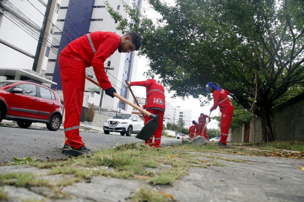 Os agentes da Autarquia Especial Municipal de Limpeza Urbana (Emlur) executam os serviços de zeladoria em seis bairros de João Pessoa, nesta quinta-feira (19). Recebem os serviços de capinação, roçagem e pintura de meio-fio os bairros de Bessa, Manaíra, Cristo Redentor, Jardim Planalto, Oitizeiro e Bairro das Indústrias, além da rodovia PB-008.