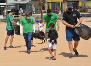 Todos os participantes receberam sacos plásticos e foram para a areia coletar resíduos como tampinhas, garrafas, canudos e outros materiais plásticos, principais poluentes encontrados no mar.