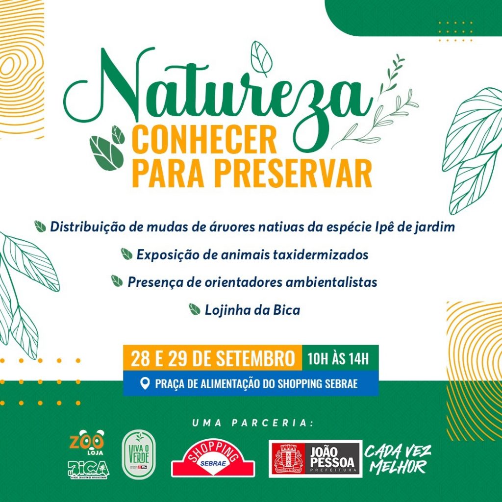 Nesta quinta (28) e sexta-feira (29), a Secretaria de Meio Ambiente (Semam) da Prefeitura de João Pessoa vai promover a exposição “Natureza – Conhecer para Preservar”, no Shopping Sebrae, no Bairro dos Estados, das 10h às 14h. A exposição tem o objetivo de contribuir para a conscientização sobre a importância de cuidar do patrimônio ambiental, nesse mês de setembro, quando se comemora o Dia da Árvore.