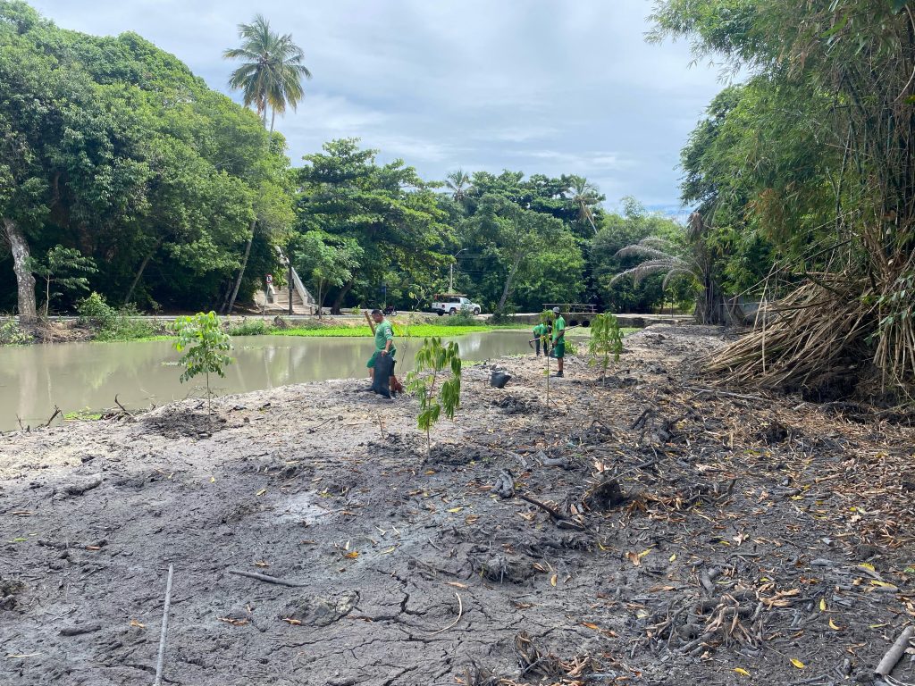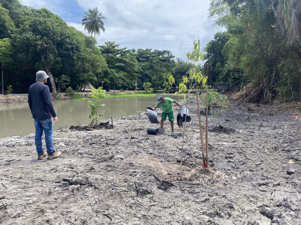 Essa semana foi feito o plantio na área da nascente, em Mangabeira, e nesta quarta-feira (23) o plantio foi realizado na área do rio localizada na Penha. Foram replantadas 50 mudas de árvores nativas e entre as espécies plantadas estão perobinha, mogno, mulungu, barriguda e aroeira. As mudas foram produzidas pelos técnicos do Viveiro de Plantas Nativas, coordenado pela Semam.