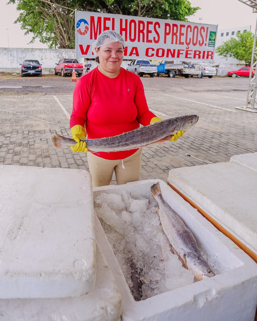 A A família de Maria Priscila, de Alhandra, tem na pesca artesanal a principal fonte de renda. Ela trabalha comercializando seus produtos na Cecaf há cinco anos. “Temos peixes a partir de R$ 10, tilápia a partir de R$ 15, traíra a partir de R$ 25, pescada amarela, várias opções de produtos e valores e, a depender da quantidade que o cliente queira levar, a gente pode ajeitar um desconto”, explicou.