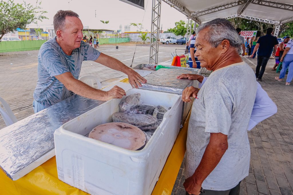 Dona Cleide Rodrigues é de Itapororoca e vende pescado na Cecaf há nove anos. “Tem muita variedade, aqui todo mundo se ajuda, o que não encontrar na nossa tenda, vai encontrar na tenda de algum outro colega. O preço está bom e a qualidade excelente, para que as famílias preparem o almoço da Semana Santa”, destacou.