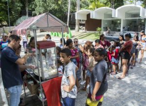 O passeio ecológico na Bica começou com a recepção as famílias, depois foi feita a distribuição de pipocas e algodão doce, e na sequência a caminhada. O encerramento das atividades foi marcado com um piquenique, no lago do parque, onde foi servido um lanche antes da volta pra casa.
