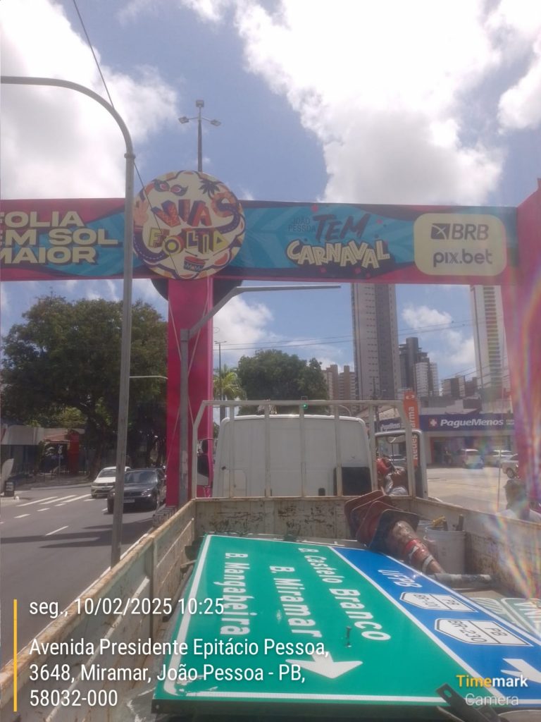 folia de rua intervenções em placas turísticas mobilidade passagem segura dos trios elétricos retirada ou remanejamento da sinalização área segurança viária semob-jp sinalização aérea na Via Folia via folia