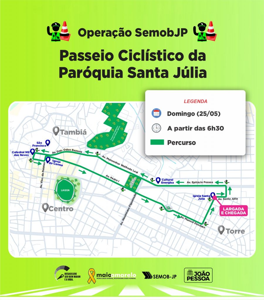 Neste sábado (24), os agentes de mobilidade estarão trabalhando na procissão da Comunidade Nossa Senhora das Graças, em Mangabeira. Já no domingo (25), as equipes estarão apoiando o Circuito Sesc de Corridas, no Largo de Tambaú e ainda o Passeio Ciclístico da Paróquia Santa Júlia, no bairro da Torre.