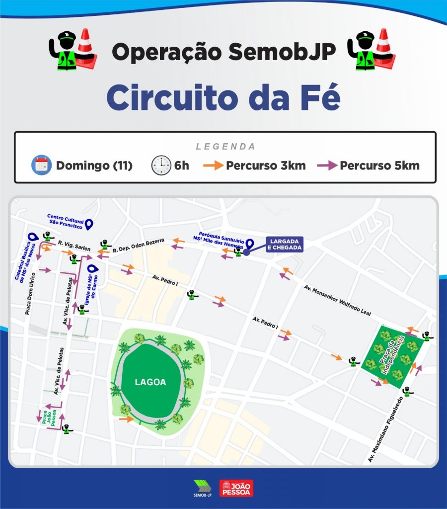 A Superintendência Executiva de Mobilidade Urbana da Capital (Semob-JP) definiu o apoio operacional na realização da 1ª Corrida da Paróquia Santuário Mãe dos Homens, neste domingo (11), a partir das 6h.