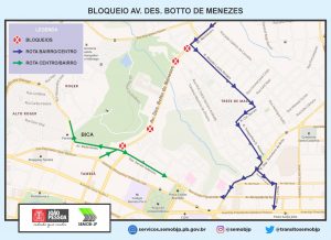 Com o bloqueio, os veículos que transitam no sentido Centro/bairro seguirão após a Dep. Barreto Sobrinho segue pela Av. Bandeirantes, Av. Gouveia Nóbrega, Elpídio Alves da Cruz, Cordeiro Sênior, Av. Airton Senna da Silva, R. Mardokeu Nacre, Fagundes Varela e volta ao itinerário normal.