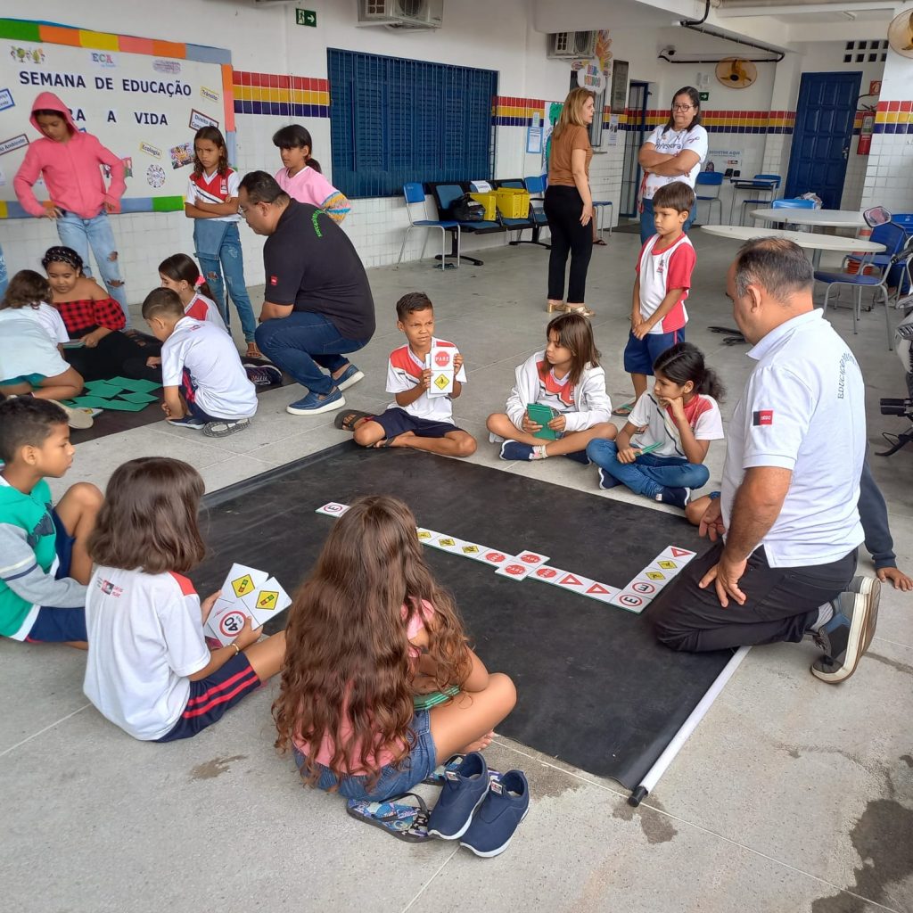 Na atividade foram abordadas 100 crianças de quatro turmas do Ensino Fundamental, onde foram realizadas mini palestras na sala de aula, brincadeiras e jogos. Além da distribuição de cartilhas lúdicas com temáticas voltadas para o trânsito.