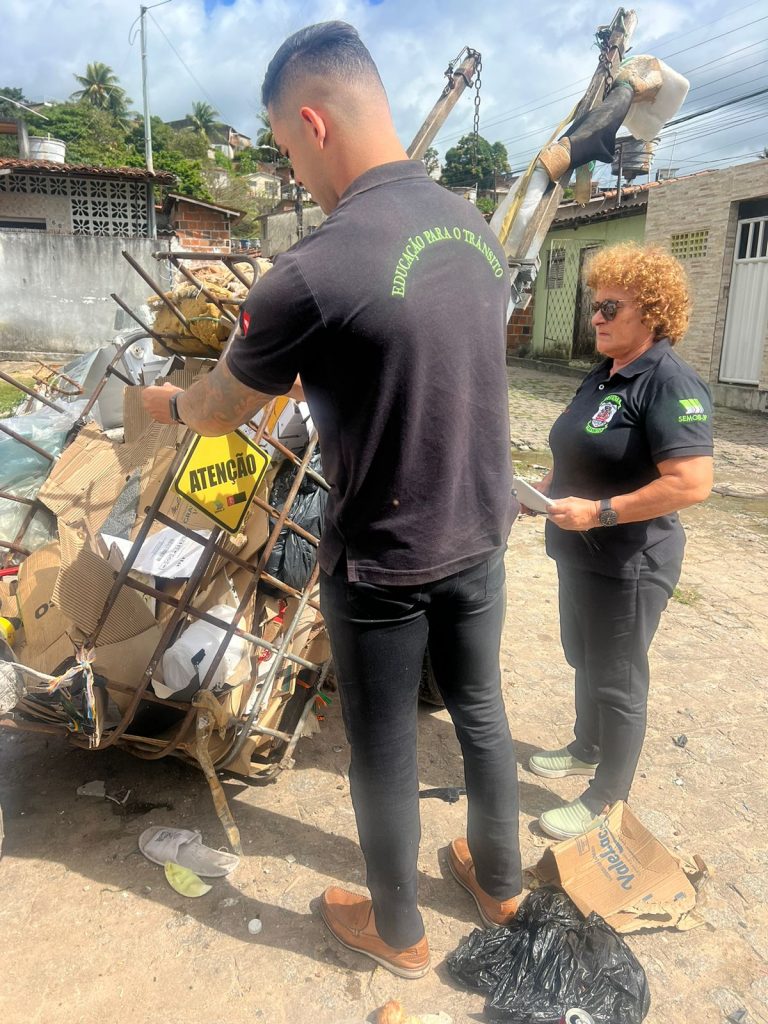 Na manhã desta sexta-feira (9), a equipe da Divisão de Educação para o Trânsito (Died) da Superintendência Executiva de Mobilidade Urbana (Semob-JP) realizou a ação itinerante ‘Sinalizando a sua Segurança’, nos bairros do Alto do Matheus, Bairro dos Novais e Ilha do Bispo, onde abordaram carroceiros de material reciclado, orientando sobre a segurança no trânsito.