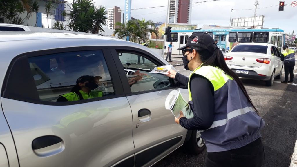 Parceiros – Participaram da ação integrada no cruzamento semaforizado, os educadores da Semob-JP e integrantes de órgãos de trânsito parceiros da Semob/Santa Rita, Semob/Cabedelo e DMTran-Bayeux realizaram abordagens aos condutores e pedestres, entregando panfleto com mapa explicando as alterações.