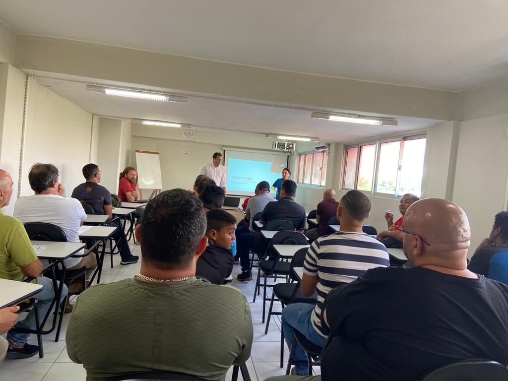 Durante uma palestra dada pelo urologista Rafael Rebouças, que coordena o Serviço de Urologia do HMSI, um grupo de 19 homens recebeu orientações sobre vasectomia, procedimento cada vez mais procurado pela população masculina e considerado um dos métodos de planejamento familiar mais eficazes na prevenção da gravidez.