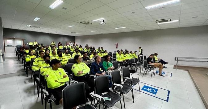 Participam do Encontro, o diretor de Operações, Sanderson Cesário, a chefe da Divisão de Educação Para o Trânsito, Gilmara Branquinho, e agentes de mobilidade da Semob-JP.