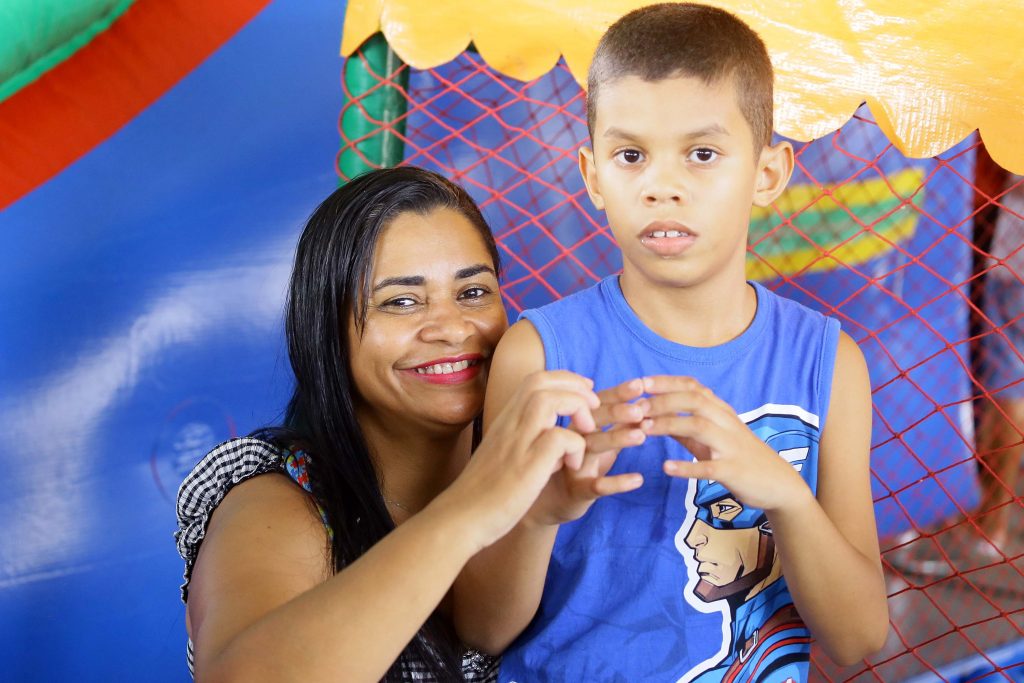 Adiana e seu filho Antônio, de 8 anos, que é acompanhado pelo Centro de Referência Municipal de Inclusão para Pessoas com Deficiência (CRMIPD), participaram pela primeira vez do projeto. Enquanto ele se encantava com a piscina de bolinhas, Adiana observava de perto, brincando e dançando com outras mães de crianças atípicas.