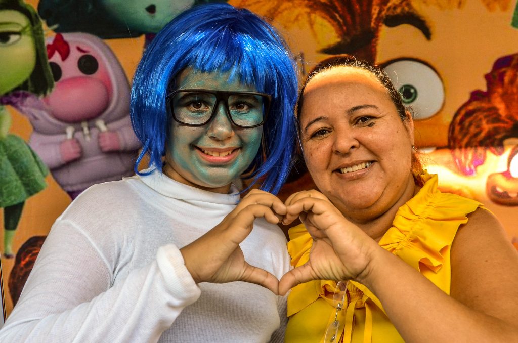 O tema agradou tanto que Karoline Henrique da Costa, de 11 anos, se fantasiou com o personagem do filme, Tristeza, para participar do evento. E apesar da caracterização, Karolzinha, como é carinhosamente chamada pela mãe Flávia Henrique Pacheco, estava esbanjando felicidade em poder ter acesso a um momento tão divertido e lúdico.