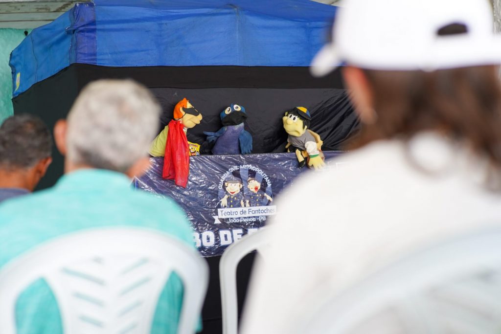 O Teatro de Fantoches da Guarda Civil Metropolitana de João Pessoa realizou uma apresentação, nesta quinta-feira (6), para os usuários do projeto ‘Chega Junto’, que é gerido pela Prefeitura de João Pessoa, por meio da Secretaria de Segurança Urbana e Cidadania (Semusb). Com uma abordagem leve e lúdica, a apresentação abordou alguns temas importantes, como alimentação saudável, vício em açúcar e os benefícios da prática de exercícios físicos.