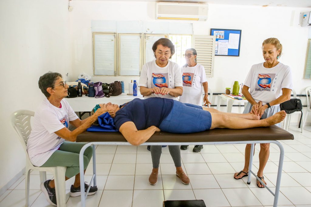 Dez anos de atividade – No Centro de Referência Municipal da Pessoa Idosa, localizado à Rua Ana Guedes De Vasconcelos, 262, a atividade é praticada há 10 anos e, a cada dia, o número de interessado se multiplica. “A quantidade de pessoas que recebe Reiki é variada… Não há faixa etária limite. As vagas para o Reiki estão sempre abertas dentro do horário de aplicação no Centro de Referência”, diz a professora Vilma Damião, uma das mais antigas a comandar a atividade, com curso de mestrado na disciplina.