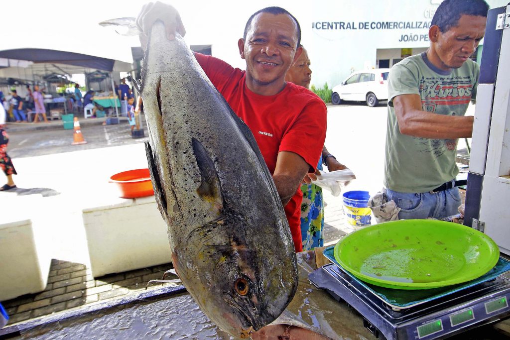 Já a comerciante Maria Priscila Gonçalves estava vendendo pescado com um grupo de outros oito feirantes em estruturas montadas pela Secretaria de Desenvolvimento Urbano (Sedurb), responsável pela administração do local, na entrada da Cecaf. “Trouxemos os peixes de Alhandra. Chegamos cedo e ficamos até durar o estoque. Hoje, o produto mais procurado é a tilápia”, revela.