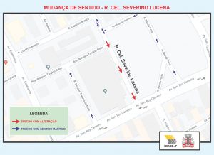Trecho da Rua Cel. Severino de Lucena tem sentido de circulação invertido a partir desta terça (9)