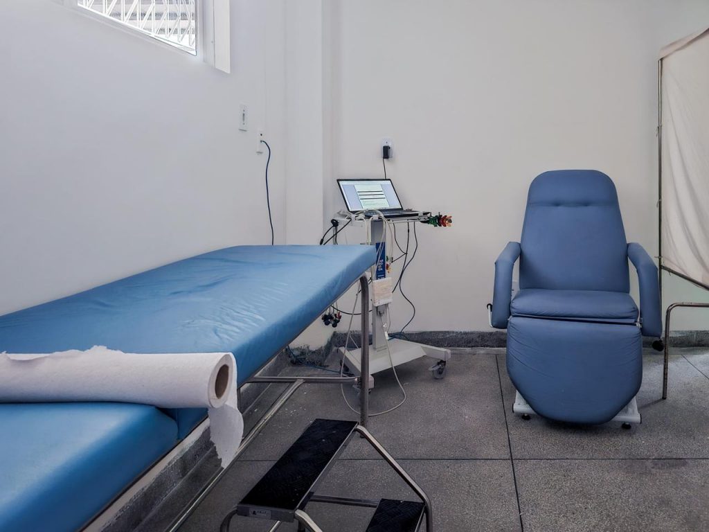 Para melhor funcionamento do fluxo, foi reestruturada a sala do exame que agora conta com um aparelho de eletrocardiograma, maca, poltrona e computador para registro adequado do exame e melhor assistência ao paciente. Também foram realizadas medidas de educação continuada e treinamento frequente com toda a equipe da unidade.