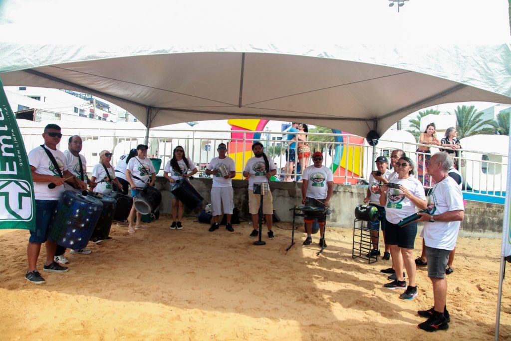 Arte – Para a coordenadora da Divisão de Arte e Cultura (Diac) da Emlur, Risonete Guedes, é possível educar e chamar a atenção para a causa da proteção ambiental por meio das expressões artísticas. “Trouxemos o Baticumlata para se apresentar, um grupo formado por nossos servidores que utiliza materiais de metal e plástico para produzir músicas”.