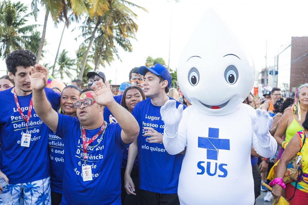 Zé Gotinha levou alegria e alertou foliões sobre prevenção no bloco Portadores da Folia