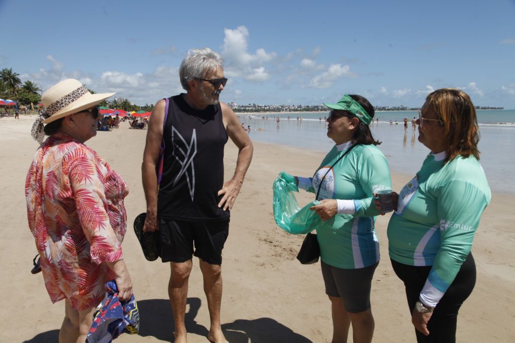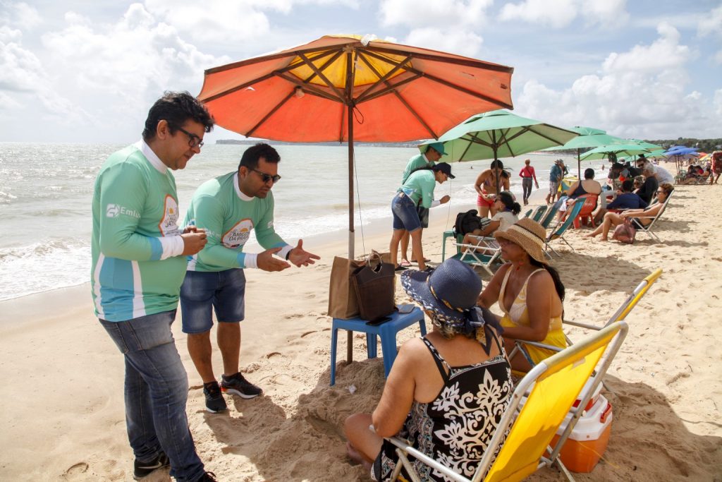 As equipes da Emlur e da Semam orientam os frequentadores das praias – entre banhistas, praticantes de atividades físicas, comerciantes, barraqueiros de guarda-sol na areia e trabalhadores ambulantes – sobre o correto descarte de resíduos produzidos durante sua permanência nas praias.