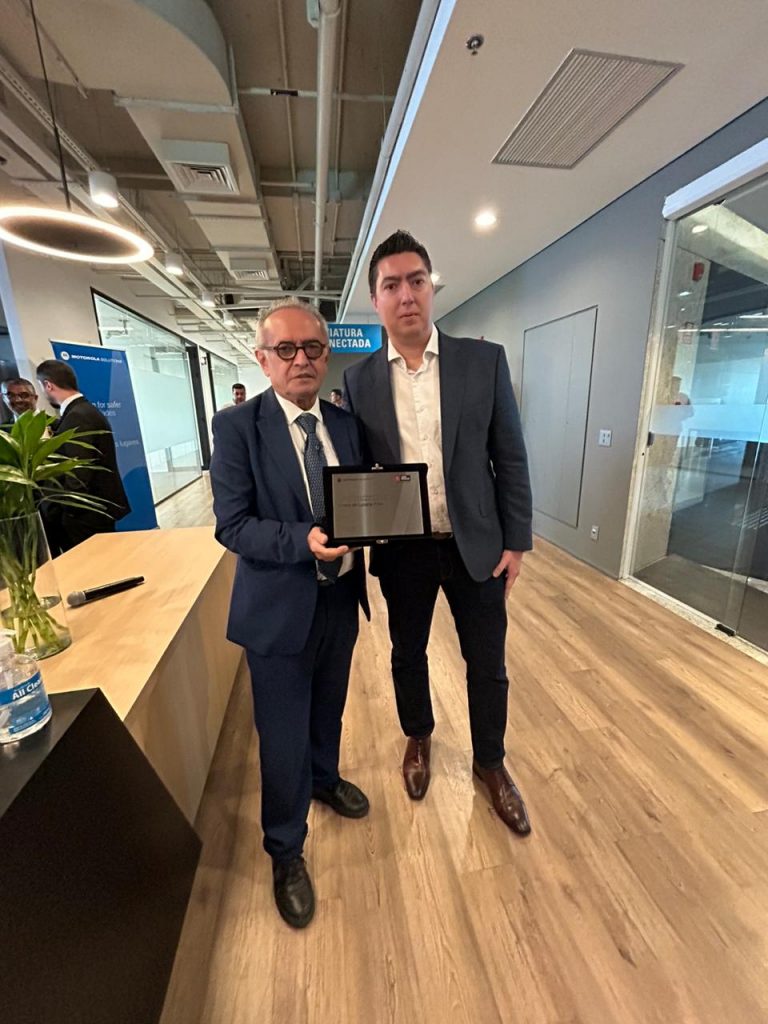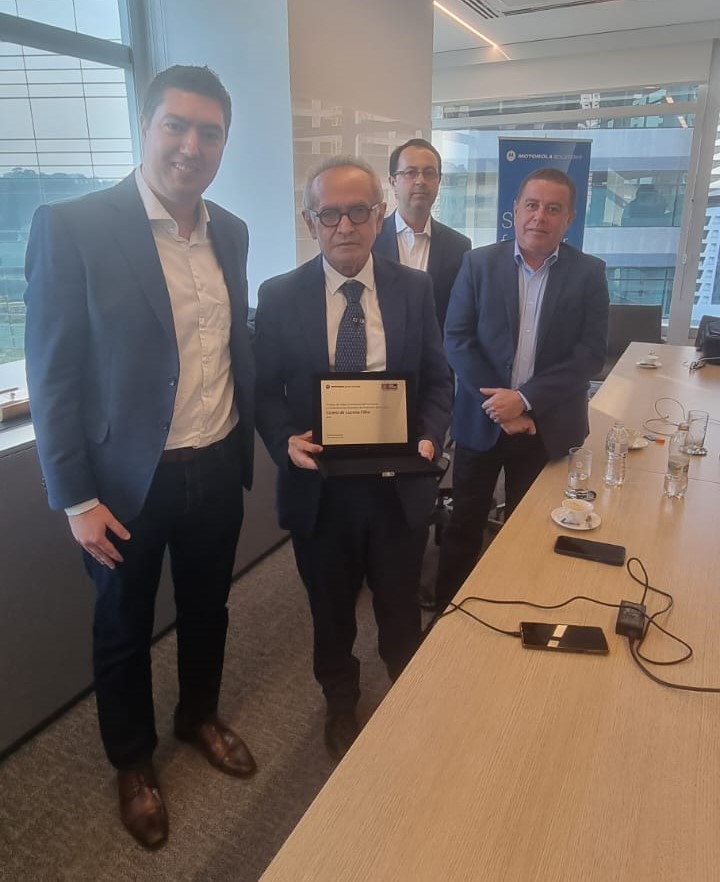 O prefeito Cícero Lucena recebeu, nesta quarta-feira (3), da Motorola Solutions, o reconhecimento da Central de Monitoramento de Segurança da Prefeitura de João Pessoa como o projeto de Vídeo e Software de Comando e Controle mais inovador de toda a América Latina. A comenda foi entregue pelo presidente da Motorola Solutions Brasil, Gustavo Ancheschi, durante visita do prefeito e comitiva ao Centro de Inovação da multinacional no Brasil, situado em São Paulo. Junto a alguns auxiliares, o gestor também conferiu novidades na feira tecnológica LAAD Security & Defence 2024.