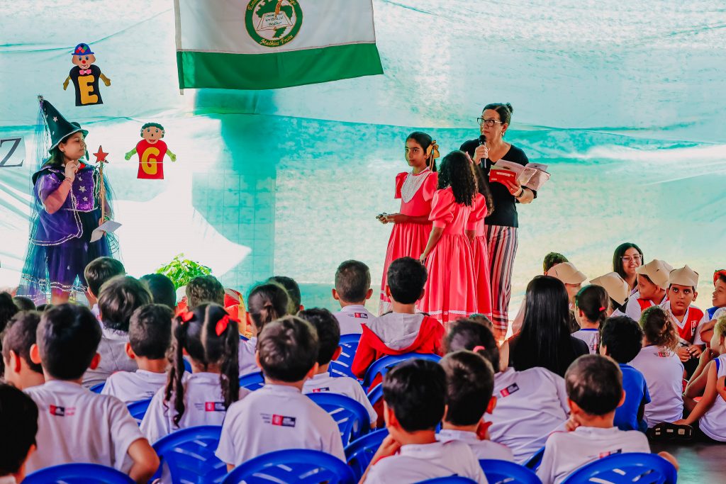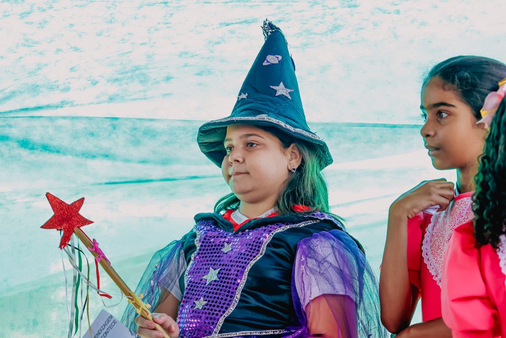 A professora Solange Duarte, que atua na biblioteca da escola, preparou uma contação de história especial para o lançamento da ‘carruagem literária’. E no ápice da história, o carrinho em formato de abóbora foi apresentado para um pátio lotado de crianças.
