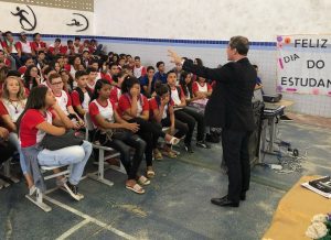 Os alunos do 8º e 9º ano da Escola Municipal de Tempo Integral José Américo, no bairro José Américo, receberam na manhã desta sexta-feira (17) a visita do presidente da Ordem dos Advogados do Brasil, Seccional Paraíba (OAB-PB), Paulo Maia. O objetivo foi proporcionar aos estudantes da unidade de ensino o acesso ao conhecimento, regras básicas de cidadania, da obtenção de direitos e do exercício destes para alcançar a plenitude da cidadania.