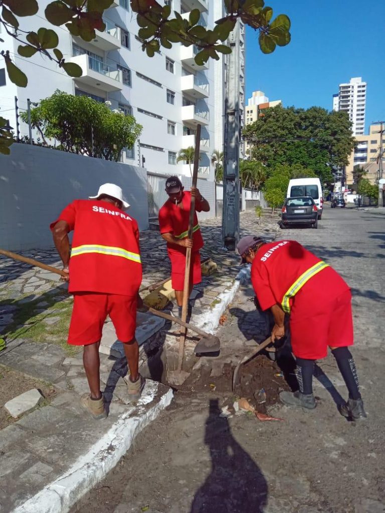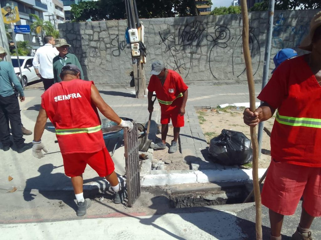 Os serviços na rede de drenagem reforçam serviços de desobstrução de galerias e abertura de lançamentos nas localidades de Bessa, Tambaú, Manaíra e Cabo Branco.