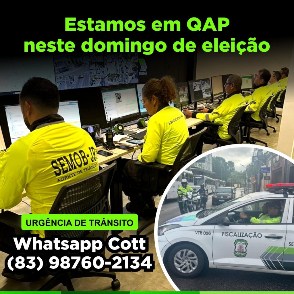 Transporte Público – Em virtude da realização do primeiro turno das eleições municipais, a Semob-JP determinou que as empresas concessionárias operem com quadro de horário especial. As linhas circulares 1500 e 5100 serão reforçadas para facilitar a chegada dos eleitores ao local da votação.