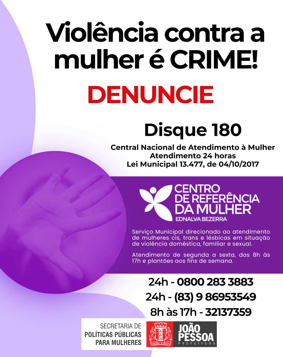 f) FONE: 0800 283 3883 | (83) 9 8695-3549 (atendimento 24h) | 180